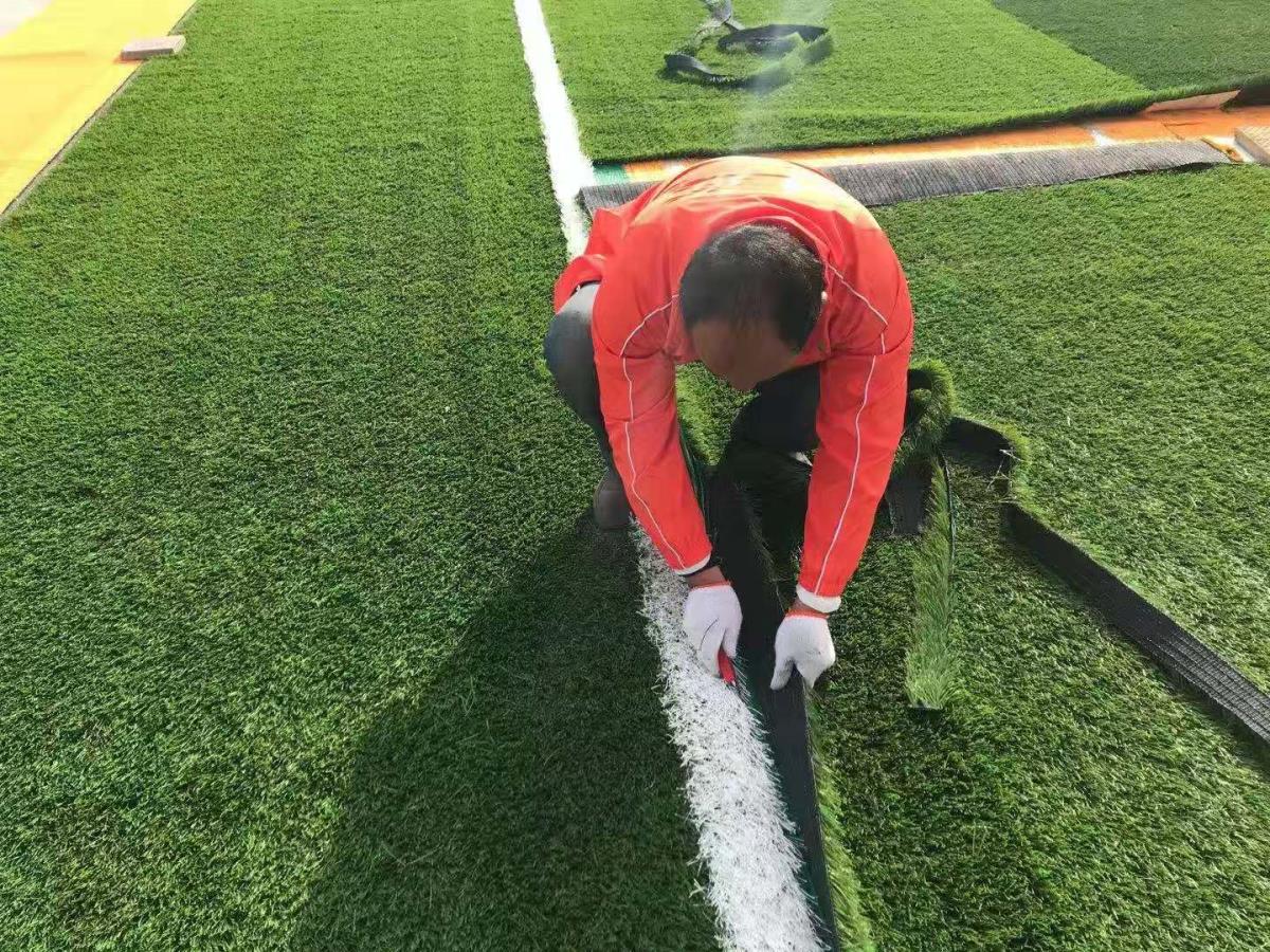 其次,人造草铺设前要和人造草生产单位一起对草皮进行质量检查,检查草皮的材料质量、密度和编织工艺是否合格,以满足使用要求。然而人造草足球场施工技术对人造草在后期的维护保养和提高使用寿命是非常重